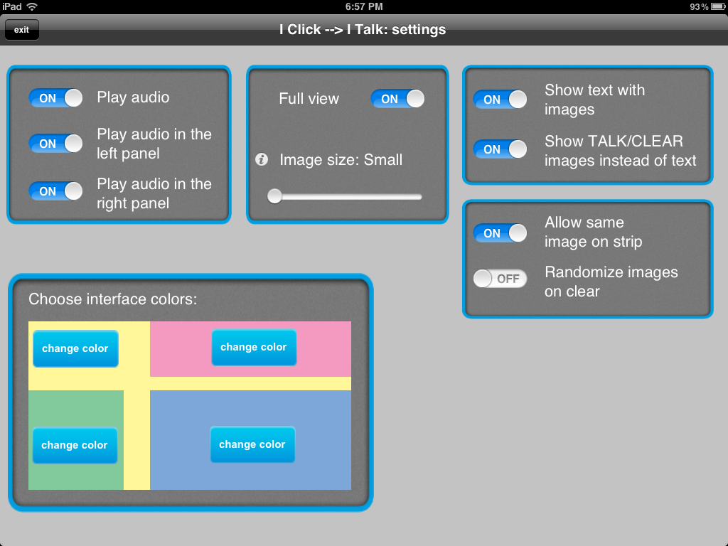 These are screenshots of I Click → I Talk application for iPad (click on the image to enlarge it).
